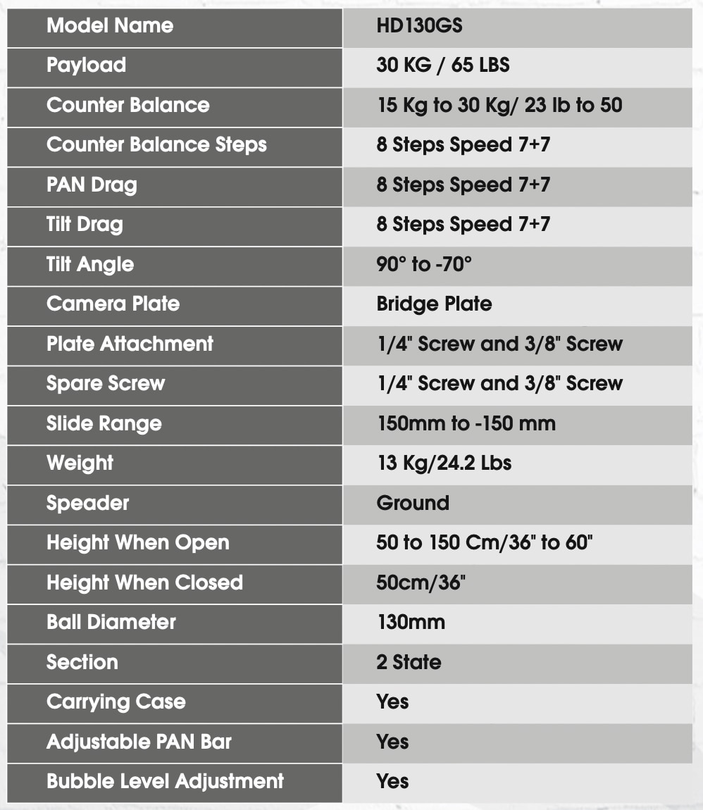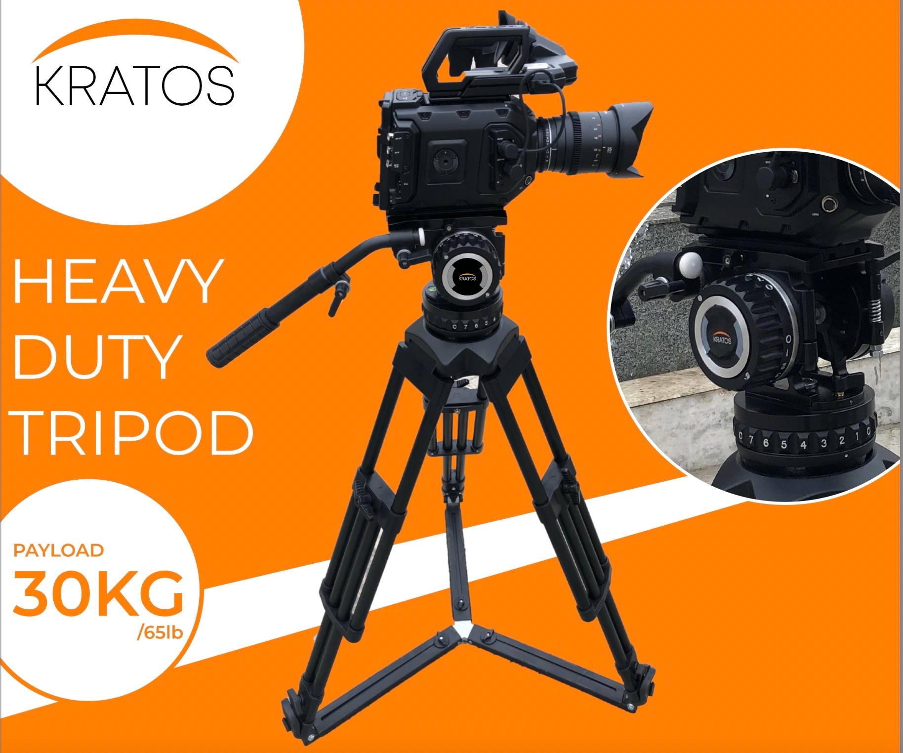 KRATOS Professional Tripod with 130mm Ball , Aluminium Legs ,Geared head , Counter Balance : , Payload : 30KG , with Ground Spreader , Bubble with light , Head with Sliding Plate